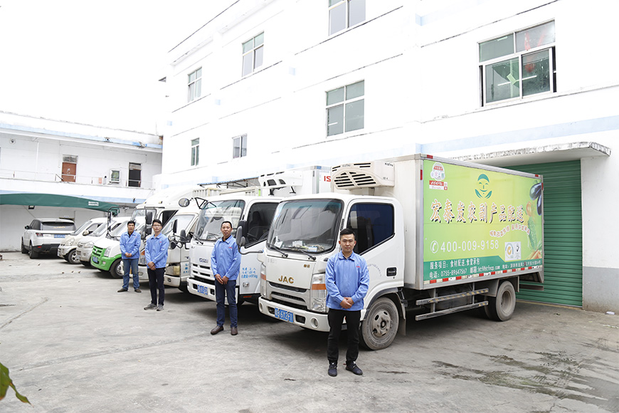 宏泰發自備運輸工具,保證每天所配送的產品新鮮質優,在配菜、送菜過程中實行專人負責的一條龍服務,根據客戶不同需求按時,按量送貨,且不耽誤作餐的時間。